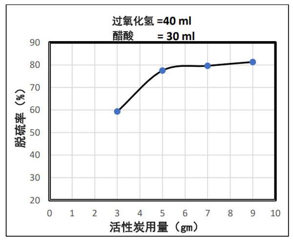 圖1:所用樣品中脫硫百分比與活性炭含量之間的關(guān)系。