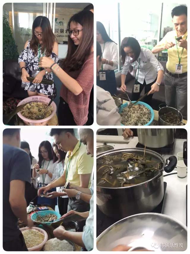 悠悠粽子香, 濃濃端午情,專注于活性炭的韓研人一個個爭先恐后地大顯身手,真別說,包粽子還真是一門技術(shù)活,男同胞和女同胞們進行對抗PK賽,幾乎勢均力敵,但最后還是讓心靈手巧的女同胞們奪了冠。