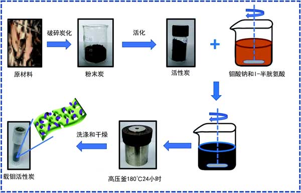 圖1:活性炭載二硫化鉬復(fù)合材料的制備示意圖。