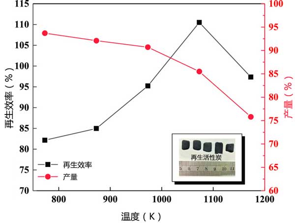 圖4:活化溫度對再生效率和產(chǎn)率的影響。