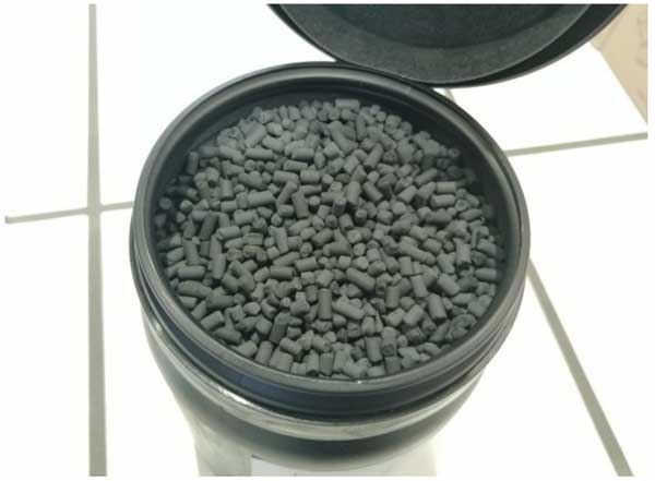 根據(jù)直接使用瓶裝真實氣體所獲得的結(jié)果,包括列出的催化劑毒物,這會導(dǎo)致催化劑快速降解,因此在第一個反應(yīng)器的上游安裝了活性炭過濾器。為此,將金屬氧化物浸漬的活性炭顆粒添加到氣體混合站。這些顆粒專門開發(fā)用于從缺氧氣流(例如CO2、N2、CO和H2)中去除硫化氫、有機硫醇、二氧化硫、硫化羰和氮氧化物。它們的銅含量為7%(以CuO計),直徑為3mm,長度為7mm(圖3)。將總共​​約300毫升的這些顆粒活性炭加入氣體混合站。