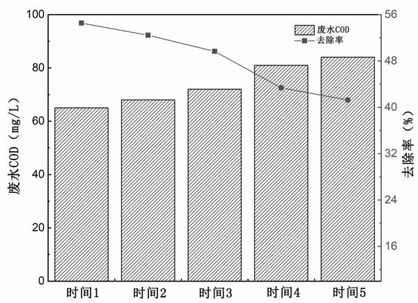 為了評估活性炭的可重復(fù)使用性,對活性炭進(jìn)行了吸附-解吸實驗。經(jīng)過四個吸附-解吸循環(huán)后,活性炭吸附對焦化廢水中COD的吸附效率僅降低了約10%(圖3),表明活性炭具有良好的可重復(fù)使用性。此外,使用NaOH作為再生劑的方法具有成本效益高的優(yōu)點?傊,這些表明本研究中生產(chǎn)的活性炭在實際廢水處理中具有巨大的應(yīng)用潛力。
