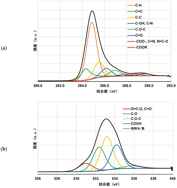 圖4:聚合物吸附前活性炭的C1s(a)和O1s(b)光譜。