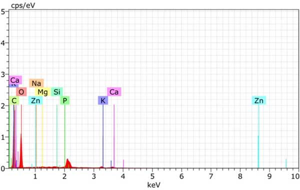 揮發(fā)物含量直接在自動(dòng)近似分析儀中測量。當(dāng)爐油樣品燃燒完全時(shí),不可燃?xì)埩粑锿ㄟ^灰分含量反映出來。在此過程中使用可承受300至400℃溫度的高溫馬弗爐。在空氣中存在氧氣的情況下,某些物質(zhì)(如水和其他揮發(fā)性元素)會(huì)燃燒,而其他物質(zhì)(包括有機(jī)分子)會(huì)蒸發(fā)。通過比較灰化前后樣品的重量可以計(jì)算出樣品中的灰分含量。固定碳的計(jì)算方法是從100中減去揮發(fā)性物質(zhì)的百分比、水分含量和灰分含量;钚蕴康亩逊e密度是借助密度計(jì)。用能量色散X射線分析法分析活性炭的化學(xué)成分圖2。活性炭的EDAX分析具有由C、O、Zn等組成的元素。