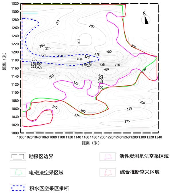 電磁法集探測深度大、分辨率高、能夠識別采空區(qū)積水狀態(tài)等優(yōu)點于一體。但是,它很容易受到靜電效應和近場效應的影響。發(fā)射端附近的導體可能會對發(fā)射源產(chǎn)生干擾,在地形地貌、工作環(huán)境復雜的地區(qū)極易影響測量精度。然而,用于氡測量的活性炭方法不受地形、地電或EMF的影響。然而,這種方法無法解釋采空區(qū)深度。因此,這兩種方法可以相互借鑒,彌補各自的不足。