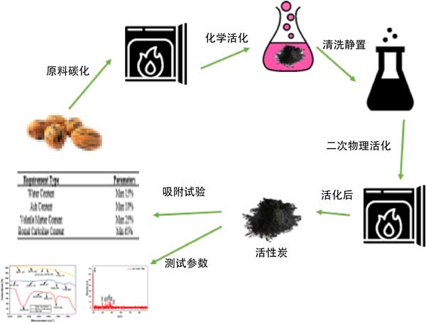果殼用作生產(chǎn)活性炭的原料。在果殼廢料的合成過(guò)程中,第一步是將殼在陽(yáng)光下干燥3小時(shí)。然后將干燥的果殼在350℃的溫度下碳化2小時(shí)。隨后使用研缽將碳化的果殼研磨成粉末,然后過(guò)100目篩。樣品制備首先稱(chēng)量肉豆蔻殼粉末和預(yù)定的1M-HCl溶液。接下來(lái),用1M-HCl溶液將粉末活化24小時(shí);罨,活性炭過(guò)濾并用蒸餾水洗滌,直至pH值變?yōu)橹行浴R坏﹑H值為中性,活性炭就會(huì)在110℃的溫度下煅燒1小時(shí)。煅燒后,來(lái)自肉豆蔻殼的碳在惰性氣體氣氛(氮?dú)?中在600℃、650℃和700℃的溫度下退火2小時(shí)。然后用蒸餾水洗滌所得結(jié)果以除去金屬化合物。氨(NH3)水平降低最多的樣品將根據(jù)下面的圖1進(jìn)行表征。