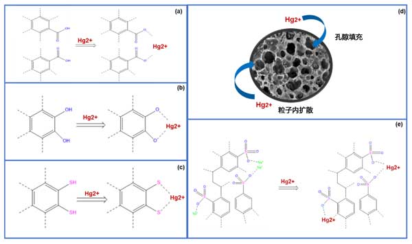 表面絡合:Hg(II)與–SH、–S–形成穩(wěn)定配位鍵;
