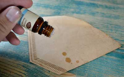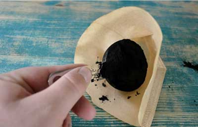 這一步是可選的,但如果你想要的話,你可以添加幾滴精油到過濾器的外部,讓你的鞋子附魔上你喜歡的氣味。并且你會(huì)發(fā)現(xiàn)活性炭會(huì)吸收一些精油氣味,但不是全部?Х冗^濾紙傾向于從制作的咖啡渣中吸收油,同時(shí)讓水通過,這對(duì)我們來說是比較適合的。讓精油放在過濾器的外部,而臭味和鞋子的水分通過過濾器吸收到活性炭粉中。