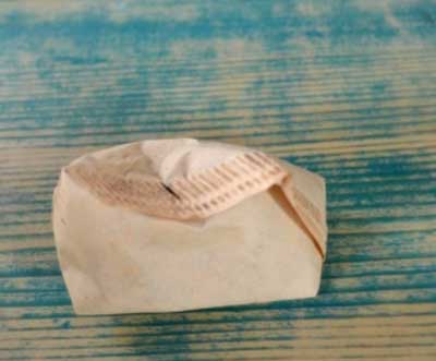 你的活性炭已經(jīng)填裝到咖啡過濾紙上了,精油也滴上去了。現(xiàn)在只要盡可能緊地包裹過濾紙,同時(shí)將角落塞入以防止活性炭泄漏。如果您想要格外謹(jǐn)慎,可以使用一小塊膠帶密封好,并在下一步中保持開啟狀態(tài)。