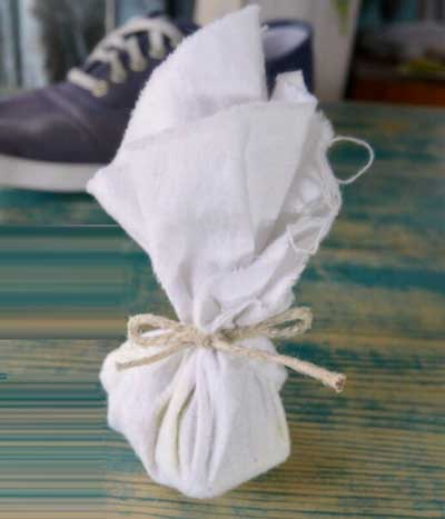 最后,把你的活性炭包裝放在布料的中心。將布料盡可能緊地拉緊,并在布料正上方系上一條繩子,將其緊貼在布料正方形內(nèi)。你可以使用任何你最喜歡的面料,只要記。翰剂喜灰癫蝗挥绊懟钚蕴康奈剑⑶,經(jīng)常使用你的面料會(huì)變臟,最好選一些不用的薄布料。活性炭在吸收氣味方面確實(shí)做得非常出色。