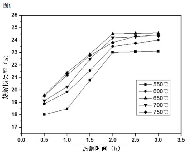 再生溫度和熱解持續(xù)時間是活性炭再生的重要參數(shù),因為有機(jī)物可在高溫下分解。此外,再生溫度和持續(xù)時間也會影響減重百分比。熱解持續(xù)時間和熱解溫度對活性炭熱解損失率(LRP)的影響如圖1所示 。如圖1所示對于所有熱解溫度,LRP隨著熱解時間的延長而增加。在2小時時獲得最大LRP。2小時后,LRP無明顯差異。對于相同的熱解時間,LRP在550-650℃的區(qū)域增加,而在650-750℃的區(qū)域產(chǎn)生墊料差異。在650℃達(dá)到最大LRP(24.5%),這表明吸附在活性炭上的有機(jī)物質(zhì)的分解完全完成。因此,最佳再生條件為650℃和2h,考慮到能量消耗和再生的經(jīng)濟(jì)性。