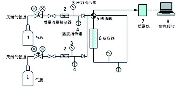 在我們之前的工作中開(kāi)發(fā)了吸附裝置來(lái)測(cè)量氣體穿透曲線(圖1)。它由三個(gè)主要部分組成:準(zhǔn)備部分、吸附段和分析部分。在氣體制備部分中,吹掃氣體是高純度Ar氣體(99.999%),其用于在引入烴氣體之前通過(guò)惰性氣體管線和反應(yīng)器吹掃系統(tǒng)。吸附部分使用丙烷或乙烷在氦氣或人造氣體混合物,其通過(guò)燃料氣體管線和反應(yīng)器。這兩條線都碰到了一個(gè)四端口交叉閥。整個(gè)裝置等溫(~26℃)。閥門(mén)位置,氣體流量,壓力和溫度完全自動(dòng)化,并由內(nèi)部程序控制。通過(guò)質(zhì)譜儀分析和量化來(lái)自反應(yīng)器出口的氣體。