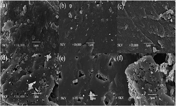 從表面形態(tài)分析不同煤和活性炭的SEM圖像如圖2所示。它表明三種活性炭的表面相對光滑,沒有任何毛孔,除了偶爾的裂縫。在活化后,三個活性炭的外表面都顯示出不規(guī)則的孔;钚蕴康谋砻嫦鄬Υ植诓⑶冶憩F(xiàn)出更多的孔。而具有低灰分和揮發(fā)性物質(zhì)含量的炭2顯示出相當(dāng)光滑的表面。可能是在氣化過程中形成的金屬鉀可以擴(kuò)散到碳基質(zhì)的內(nèi)部結(jié)構(gòu)中,從而擴(kuò)大現(xiàn)有的孔隙并產(chǎn)生新的孔隙。
