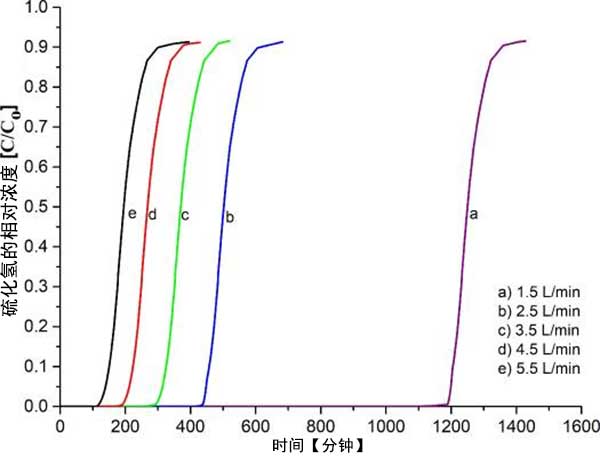 通過使用經(jīng)受不同操作參數(shù)的混合氣體測試活性炭性能,例如流速,所用長度床,所用氣體類型和活性炭。為了確定吸附容量,穿透點和飽和點分別表示硫化氫濃度何時在出口流處達到1ppm和1000ppm。此外,數(shù)據(jù)表示為重復(fù)三次的平均結(jié)果。