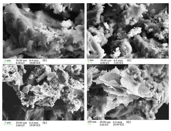 掃描電子顯微鏡分析:SEM研究證實了氧化鋅在活性炭載體上的負(fù)載,圖1示出了活性炭的SEM圖像。可以看出,活性炭呈細(xì)孔的不規(guī)則圖案。另外,氧化鋅顆粒沉積在活性炭的表面和孔中。仔細(xì)觀察表明活性炭表面上的片狀氧化鋅結(jié)構(gòu)。