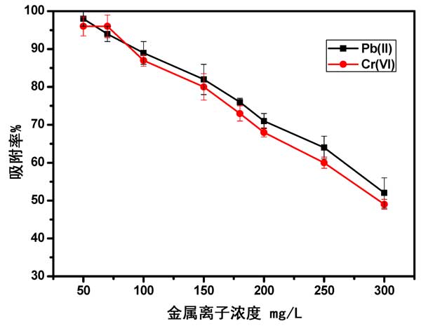 圖3:金屬離子濃度對(duì)吸附效率的影響。