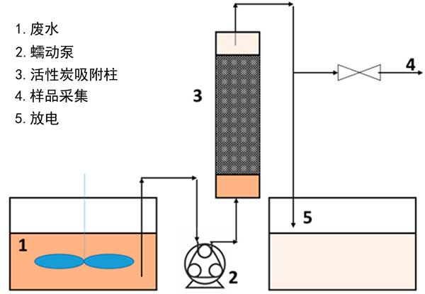 圖1:用于活性炭連續(xù)吸附測試的實驗裝置示意圖。